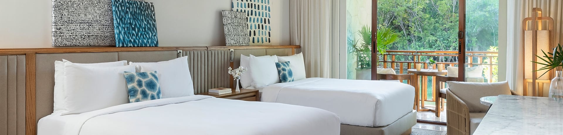 These refined and luxurious rooms invite the surrounding tropical forest indoors while situated mere steps from the azure Caribbean Sea and a powdery white sand beach.