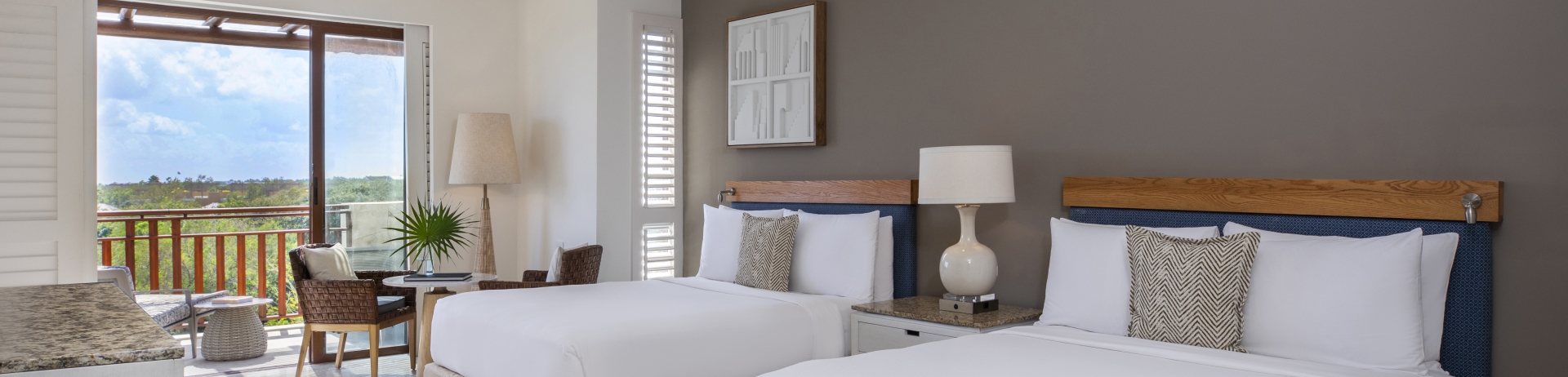 Situada en la Torre Bamboo, cerca del edificio principal y de la piscina Bamboo. Grandes puertas corredizas de vidrio se abren hacia tu balcón o terraza privada, ofreciendo impresionantes vistas panorámicas del resort. Una cama King. Baño de estilo spa. Habitaciones comunicadas disponibles.
