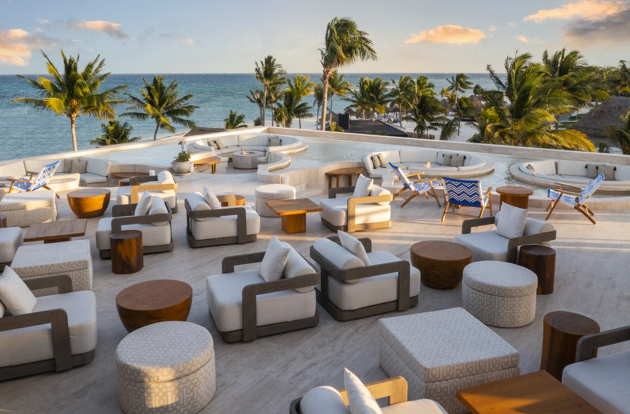 Disfrute de cócteles junto a las fogatas sumergidas en la azotea con vistas al mar Caribe. Sienta la brisa marina desde una piscina infinita exclusiva para adultos, con panorámicas del océano y la selva. Con materiales locales, la atmósfera lujosa de Maykana se integra a la perfección con los majestuosos manglares y los canales cristalinos que rodean la propiedad. Este club de playa, diseñado magistralmente, rinde homenaje a la herencia mexicana en cada uno de sus detalles minuciosos.