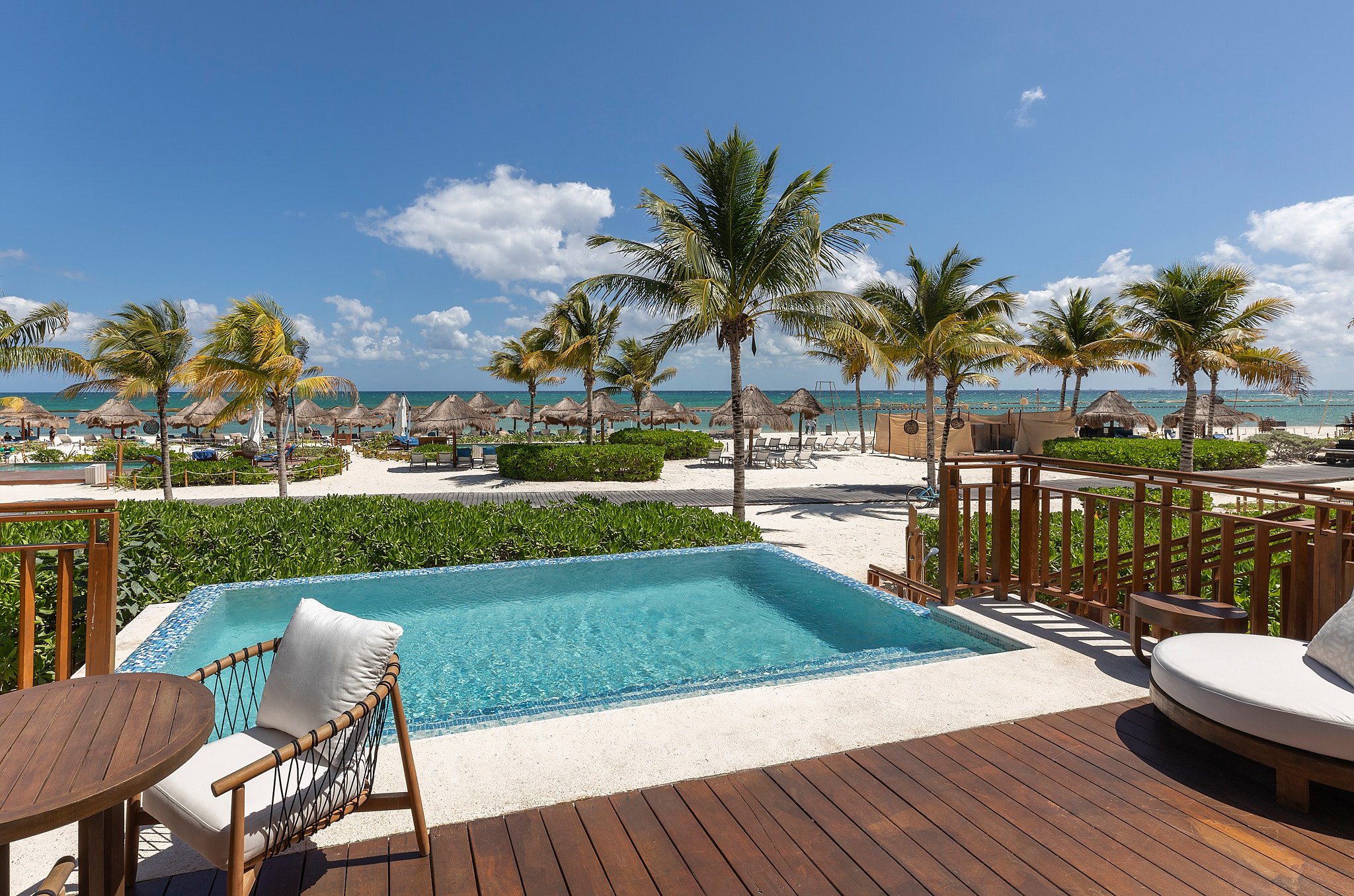 Santuario aislado en la playa, situado en el enclave privado del complejo, con vistas panorámicas a la mar turquesa del Caribe. Piscina infinita privada y terraza amueblada. Amplia sala de estar y comedores independientes. Una cama King. Dos cuartos de baño tipo spa. Servicio exclusivo de mayordomo Fairmont.