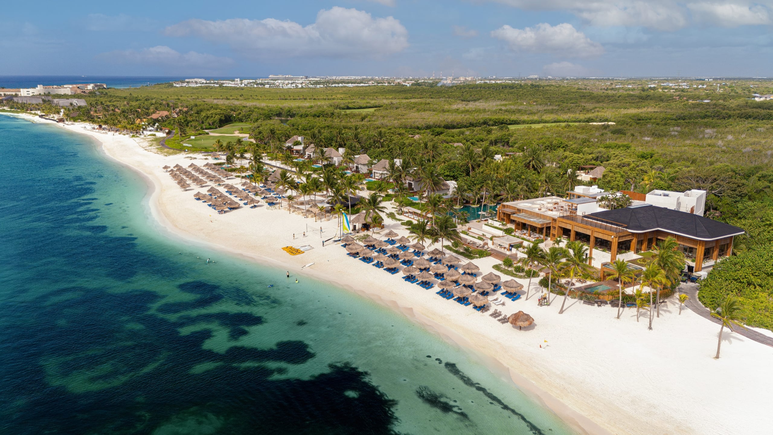 Tee off amidst breathtaking beauty at El Camaleón, a Greg Norman-designed masterpiece. This 18-hole championship course weaves through lush Mayan jungles, dense mangroves, and pristine Riviera Maya oceanfront, offering stunning views with every swing. Golfers of all skill levels will find joy in playing this remarkable course.